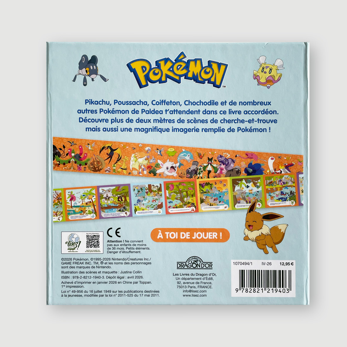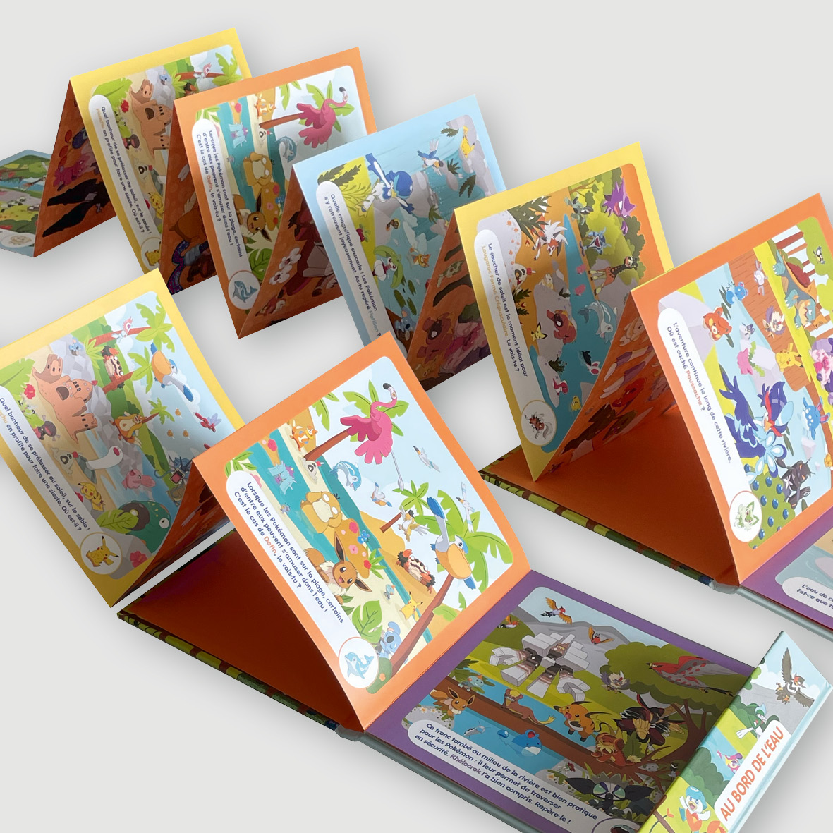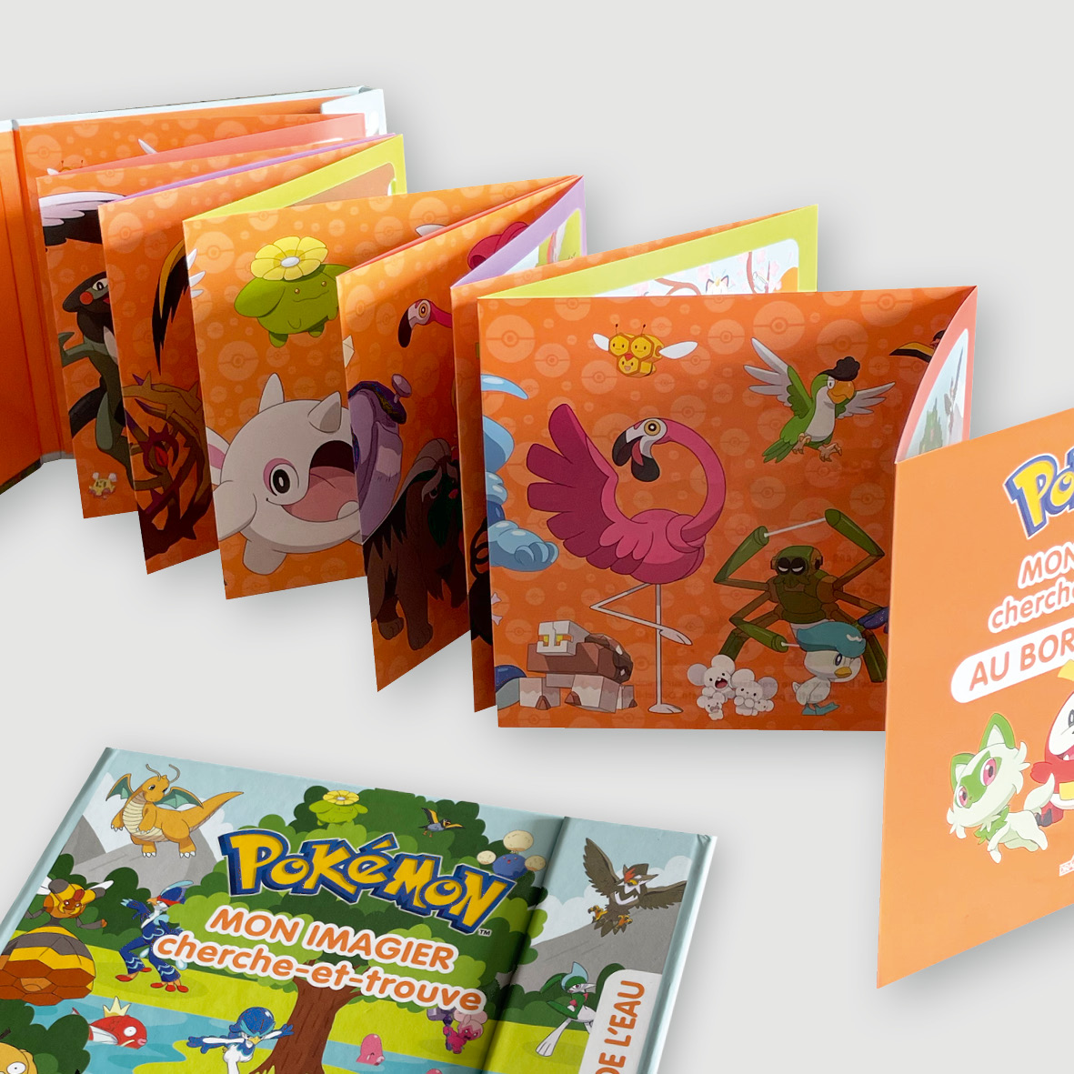 illustrations Mon imagier cherche-et-trouve Au bord de l’eau / Pokémon® Un livre accordéon de plus de 2 mètres de long ! 🪗 Création graphique Illustrations et compositions des scènes Mise en page Prépresse Publié le 6 avril 2026